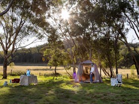 This is a hosted stay through Hipcamp, below is the information provided by the Host regarding their offering. This 70 acre farm is nestled at the base of the great dividing range, 5 minutes from Que …