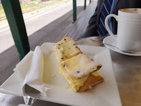 They serve an all-day and great barista coffee every Saturday and Sunday. Inside (air-conditioned), verandah covered seating and outdoor seating on the platform.